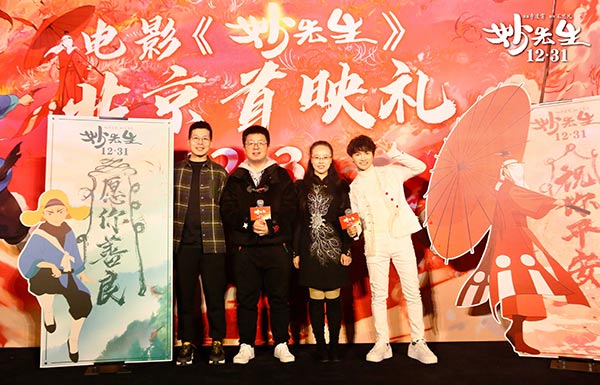 Major creators behind the upcoming film Mr Miao gather at the Beijing premiere on Dec 22. [Photo provided to China Daily]