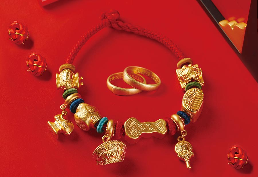 Beijing's Caibai Department Store has released a collection of gold jewelry and accessory to celebrate the upcoming Chinese Spring Festival. [Photo provided to China Daily]