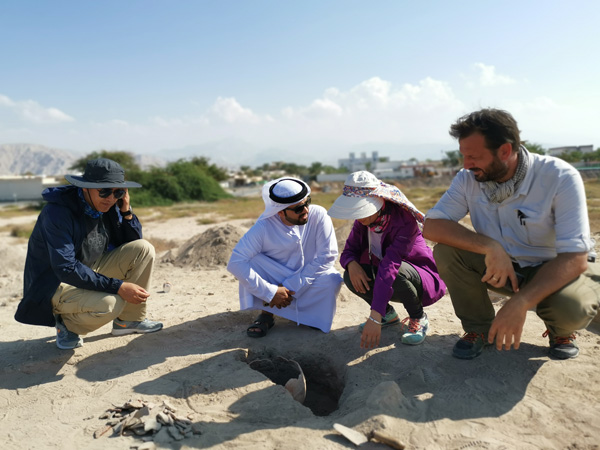 Archaeologists from the United Arab Emirates and China work at the al-Mataf site. [Photo provided to China Daily] |