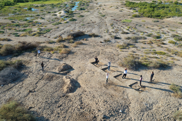 Archaeologists work at the al-Mataf site. [Photo provided to China Daily]