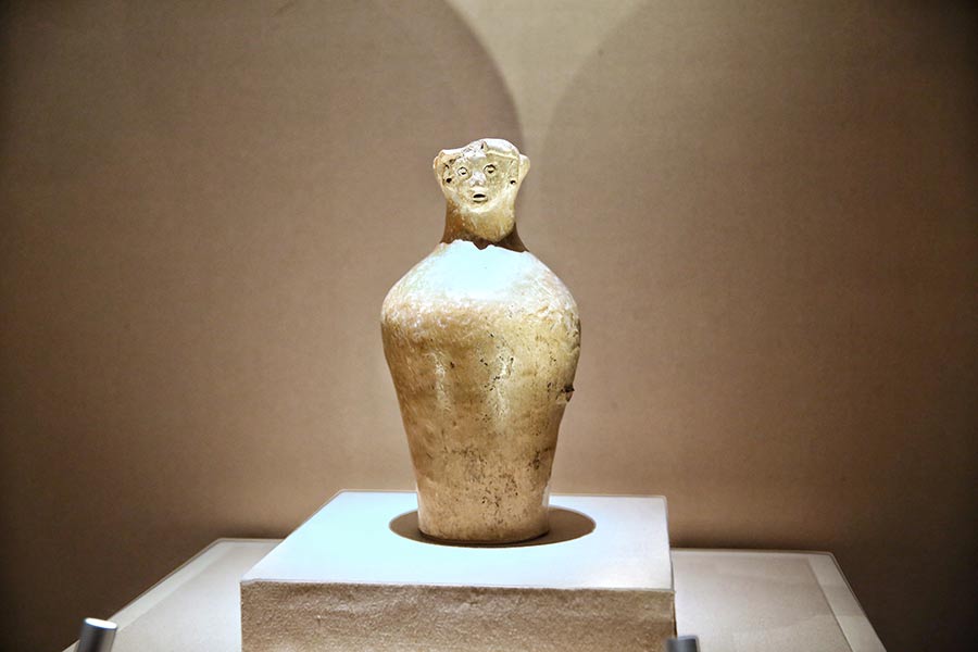 Neolithic and bronze-age pottery painted with a variety of primitive and creative patterns are on show at Heavenly Beauty, Emerging Rays, an exhibition on now at the National Museum of China through Jan 3. [Photo by Jiang Dong/China Daily]