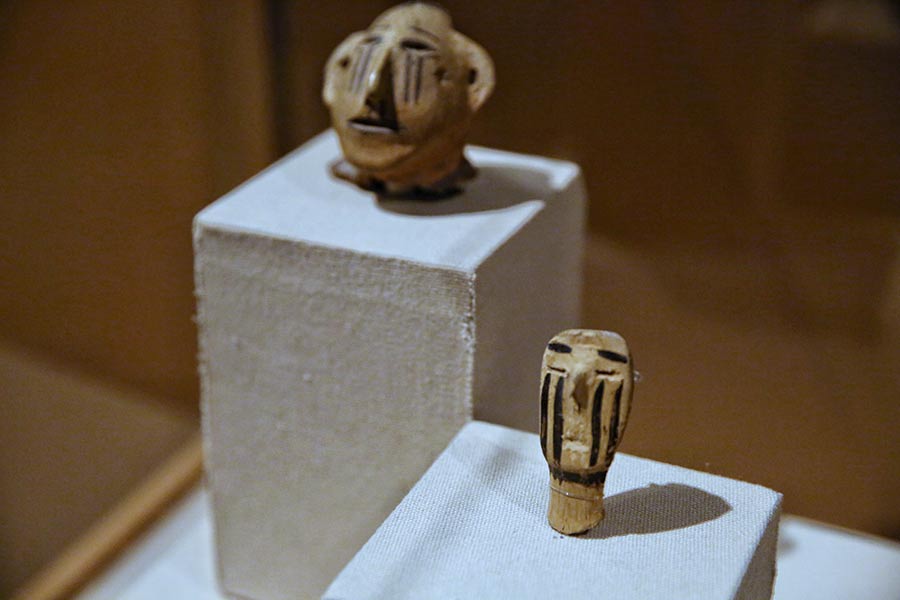 Neolithic and bronze-age pottery painted with a variety of primitive and creative patterns are on show at  Heavenly Beauty, Emerging Rays, an exhibition on now at the National Museum of China through Jan 3. [Photo by Jiang Dong/China Daily]