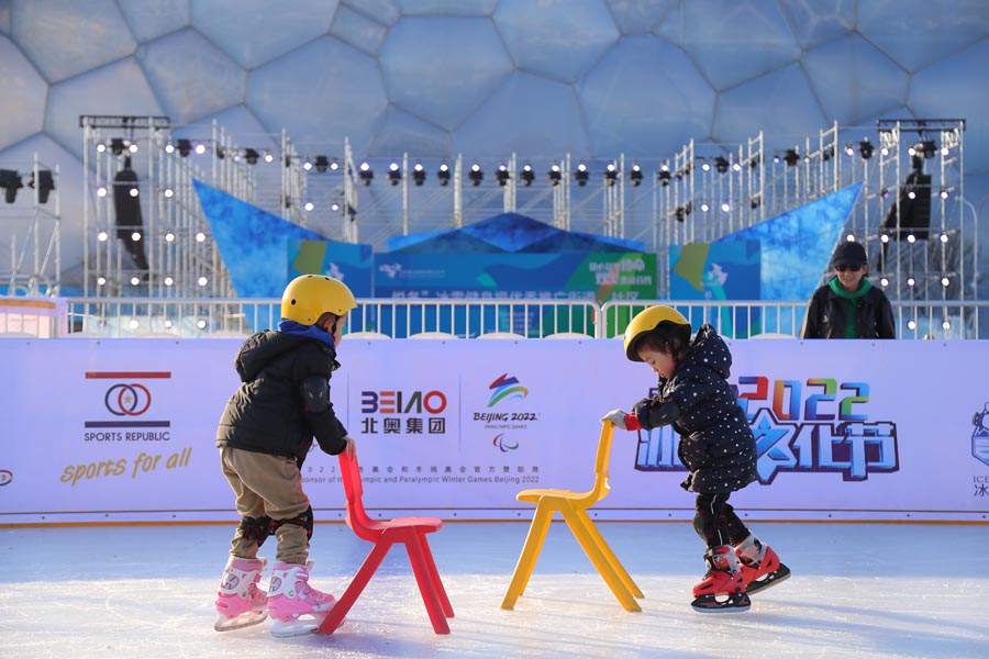 Children learn to skate at the Water Cube in Beijing, Dec 26, 2019. [Photo provide to chinadaily.com.cn] |