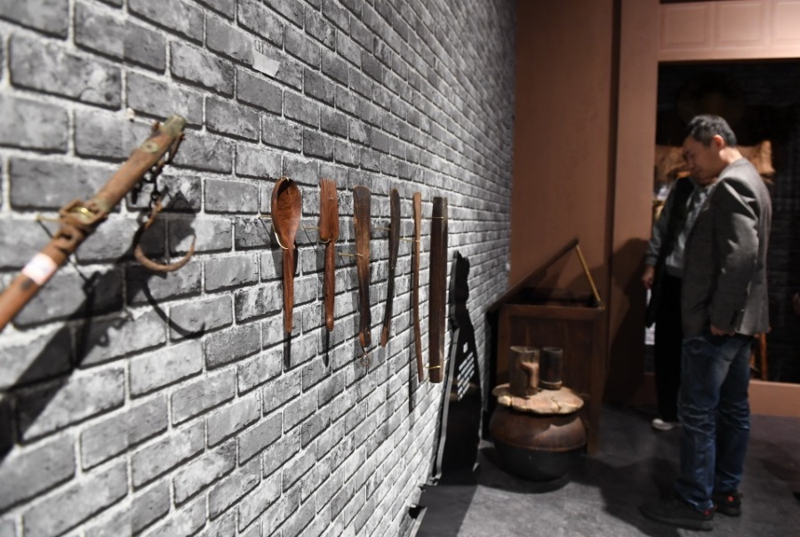 Visitors see the articles of daily use made of Hainan rosewood in an exhibition in Fuzhou, Southeast China's Fujian province on Dec 29, 2019. The exhibition opened at the Fujian Provincial Museum Sunday, with 150 Hainan rosewood collections on display.[Photo/Xinhua]