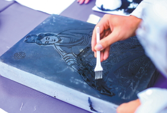 A tourist makes a rubbing from a stone carving at the Dazu Rock Carvings site in Chongqing. [Photo provided to China Daily] |