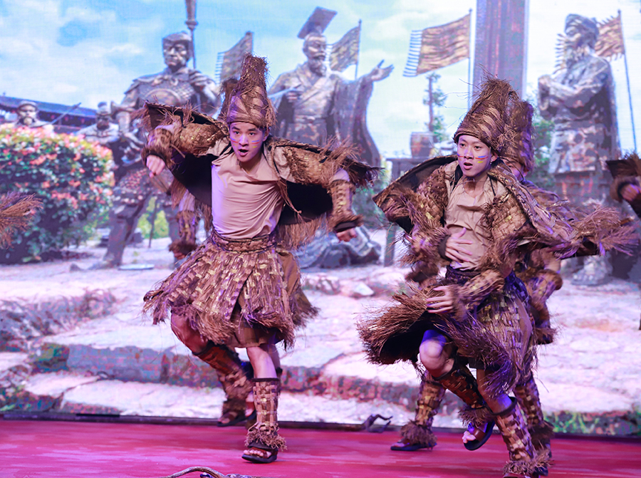 The powerful and vigorous dances of the male performers from the Tujia ethnic group showcased mysterious side of Xiangxi's intangible cultural heritage. [Photo provided to China Daily]