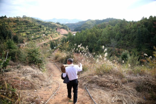 Li Fashun, a local villager in Nantian village, Gaopai township, heads to an orchard.[Photo by Chen Zebing/China Daily]