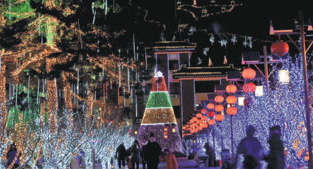 The Longqing Gorge in Beijing's Yanqing district hosts an annual ice lantern and snow festival. [PHOTO BY LI WENMING/FOR CHINA DAILY] |