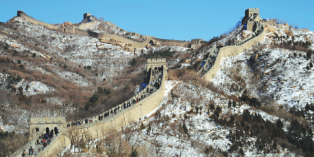 The Great Wall and the grand gorge give visitors the full measure of man's power and nature's force. The Badaling Great Wall has parts that were built and reinforced during the Ming Dynasty to defend Beijing against the Mongolians. It is one of the best preserved of all the sections of China's Great Wall. The northern part of Badaling is steeper and offers better views. More information about the Great Wall is available at the nearby Great Wall Museum and Great Wall National Theater. The Longqing Gorge is 10 km northeast of Yanqing district and covers 119 square km and is spanned by a massive concrete dam that is more than 70 meters high. Depending on the season, visitors will see a waterfall or, in winter, an icefall-as if it were frozen in time. There is the option to take a boat along a river flanked by cliffs, and enjoy imposing views of the mountains along the way. Many winter art festivals have been held at the gorge, where visitors can also pay tributes at the surrounding temples, scattered and hidden in a grove of trees in the mountains. A Guinness World Record-holding 258-meter elevator shaped like a dragon takes visitors to the top of the dam, while the journey from the mountain top to the bottom of the gorge is also a thrilling experience.