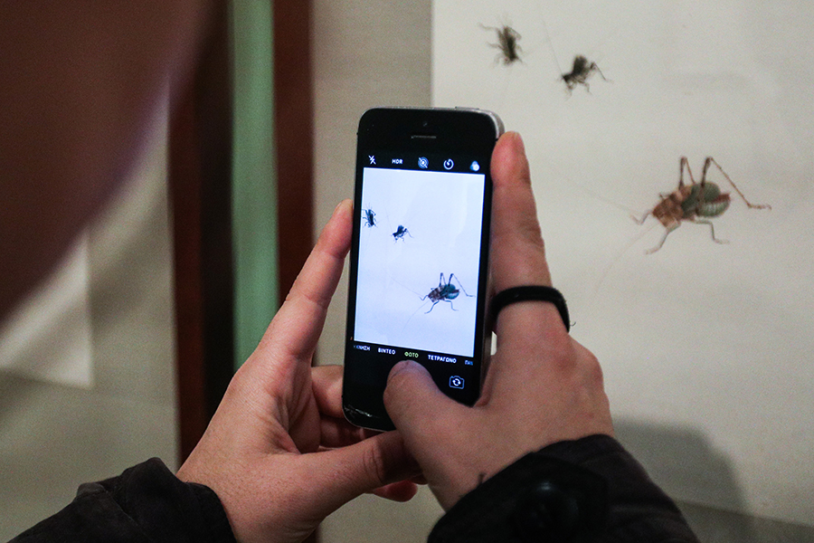 A visitor takes a photo of Qi Baishi's work. [Photo provided to China Daily]