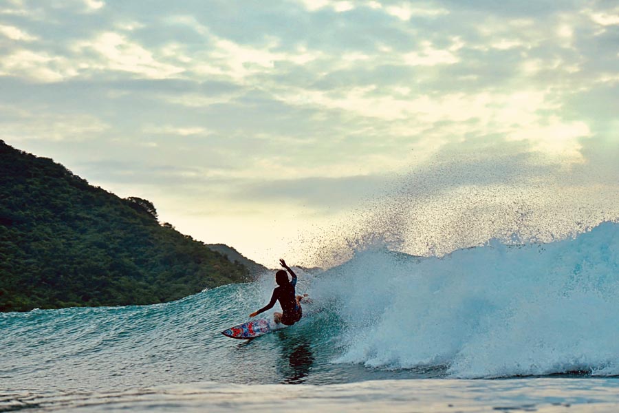 She lives in the right spot-Canggu, on the island of Bali-a perfect setting for surfers. Compared to Riyue Bay, she says, Canggu has a long-established surfing culture, attracting people from all over the world.
