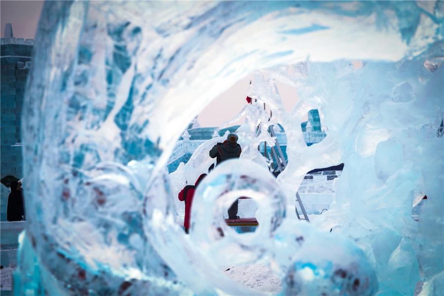With a unique snowy landscape, Northeast China is a tourism magnet every winter. On Wednesday the 34th China Harbin International Ice Sculpture Competition dropped its curtain in Harbin, capital of Heilongjiang province. The event is a lively annual fair, with craftsmen from around the world carving ice into art, Jan 8, 2020. [Photo/Xinhua]