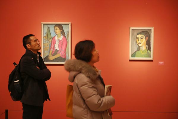 A selection of late Chinese-French artist Hsiung Ping-ming's artworks are on show at the National Art Museum of China in Beijing. [PHOTO BY JIANG DONG/CHINA DAILY] |