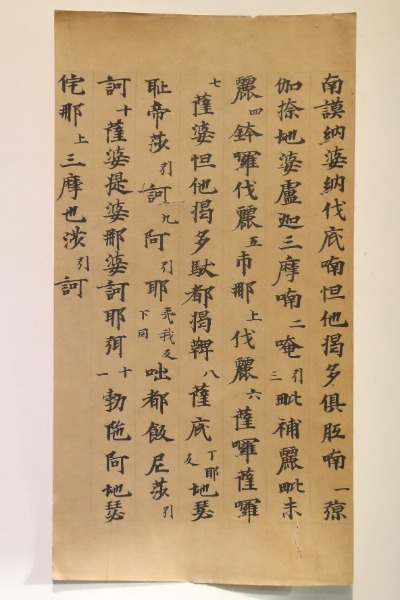 A work from Xu's collection, a piece of Buddhist scripture written in Tang Dynasty (618-907).[Photo by Wang Jing/China Daily] |