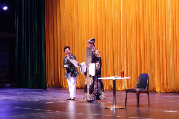 Peking Opera master Wang Rongrong (left) gives a lecture about the art form at the Permaisuri Zarith Sofiah Opera House on Dec 15.[Photo provided to China Daily] |