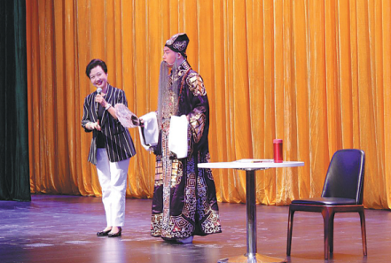 Peking Opera master Wang Rongrong (left) gives a lecture about the art form at the Permaisuri Zarith Sofiah Opera House on Dec 15. CHINA DAILY