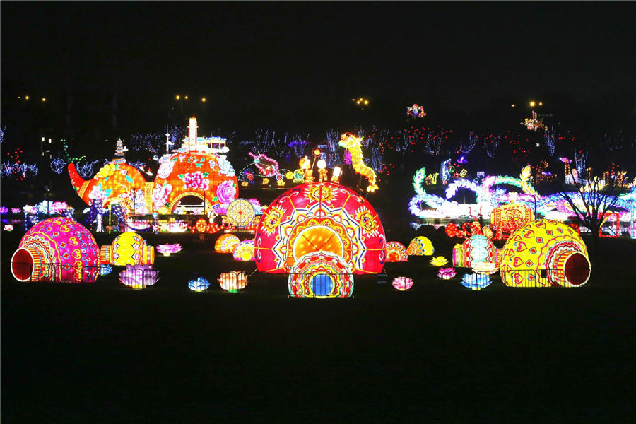 Photo taken on Jan 15, 2020 shows the illumination installations during a lantern show in Nantong city, East China's Jiangsu province. Over 130 illumination installations were exhibited on the show. [Photo/Xinhua]