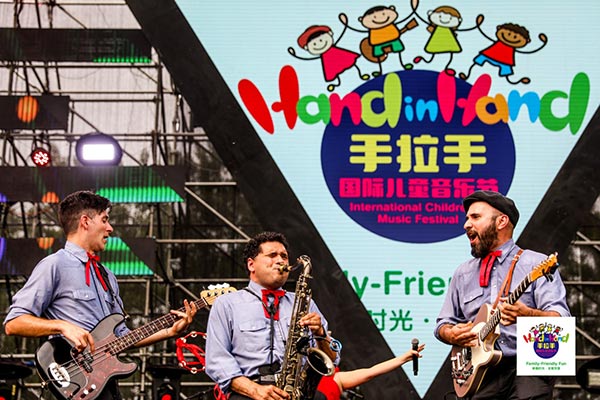 The Lucky Band from Los Angeles performs at the Hand in Hand International Children's Music Festival in Zhenjiang, East China's Jiangsu province, on April 30, 2018. [Photo provided to chinadaily.com.cn] |