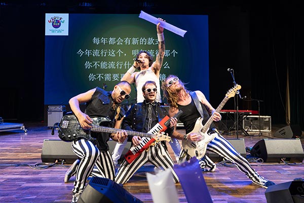 Dutch rock band Hippe Gasten rocks out during the Hand in Hand International Children's Music Festival. [Photo provided to chinadaily.com.cn] |