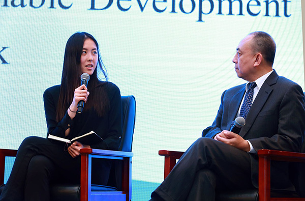 Wang Yuchen hosts a seminar on China's energy policies at Tsinghua University on Nov 17.[Photo provided to China Daily] |