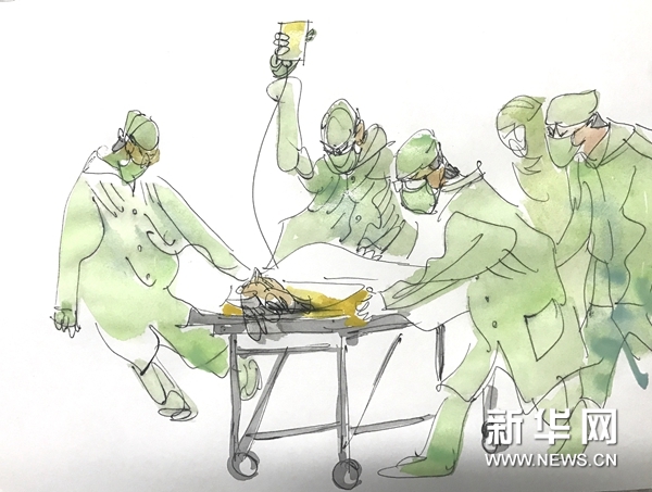 First Aid, by Zhang Jiangzhou. [Photo/Xinhua]