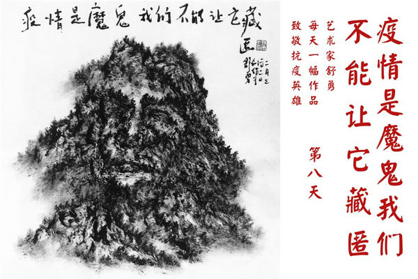 Chinese contemporary artist Shu Yong’s ink painting honors heroes fighting on the front lines of the battle against the coronavirus epidemic. [Photo/Xinhua]