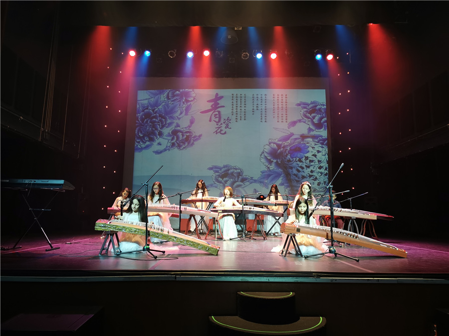 Students of the Montessori School of Colombia in Bogota stage a performance featuring the traditional Chinese instrument known as the guzheng at the 2020 Chinese New Year celebrations on Feb 22, 2020. [Photo provided to Chinaculture.org]