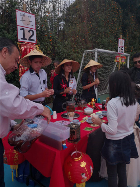Students of the Montessori School of Colombia in Bogota showcase Chinese tea culture at the 2020 Chinese New Year celebrations on Feb 22, 2020. [Photo provided to Chinaculture.org]