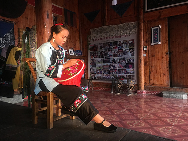 Growing up in the Miao ethnic group village, Long Jinli has been immersed in the culture and mastered Miao drumming.[Photo provided to China Daily] |