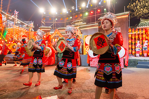 Growing up in the Miao ethnic group village, Long Jinli has been immersed in the culture and mastered Miao drumming.[Photo/Shenxin studio] |