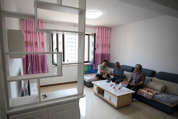 The couple Tang Zongxiu and Chen Deyin from Luotuowan village hang red lanterns to celebrate Lunar New Year, Jan 31, 2019.[Photo/Luo Daqing/For China Daily]