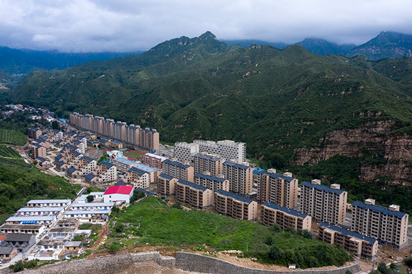 An overview of the poverty alleviation resettlement area in Longquanguan town, Fuping county.[Photo/Luo Daqing/For China Daily]