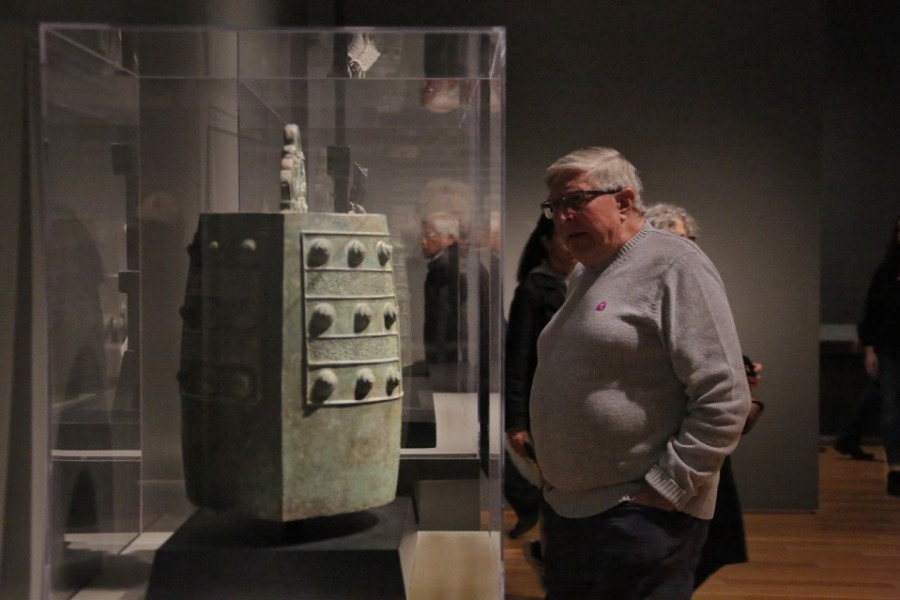 People view Chinese ritual bronzes during a media preview of the exhibition Eternal Offering: Chinese Ritual Bronzesin Houston, Texas, the United States, on Feb 26, 2020.An exhibition of ancient Chinese bronze artworks will be on display from Feb 29 to Aug 9 at Asia Society Texas Center (ASTC) in Houston, ASTC announced on Wednesday night.[Photo/Xinhua]