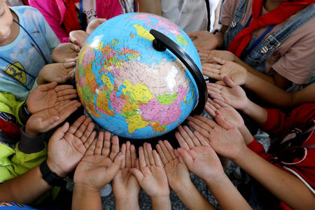 Students in a primary school in Liuzhou, Guangxi Zhuang autonomous region, participate in a campaign to contribute to protect the environment of our planet. TAN KAIXING/FOR CHINA DAILY