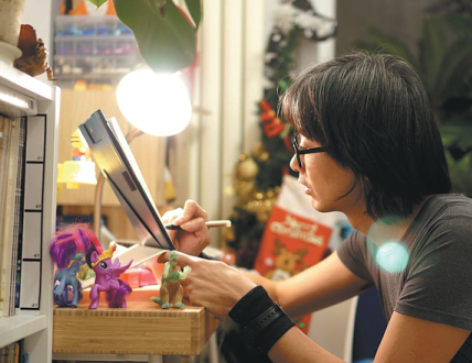 Peng draws at home. [Photo provided to China Daily]