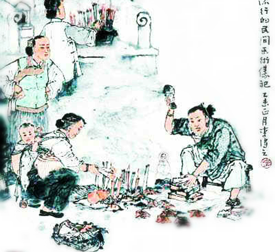 "Villain" hitting originated in the Tang Dynasty (618-907) and it's a folk ritual popular in Guangdong and Hong Kong. The custom is practiced during the Awakening of Insects to expel the "villain" and to bring good luck. People often assign a specific "witch" (usually an elderly woman) to "beat the villains". They use paper cut in the shape of humans to represent "villains" in their lives and the "witch" would use shoes or other tools to hit the paper to expel bad luck.