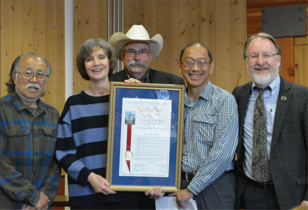 Eugene Moy (left) and Susan Dickson (middle) at a Chinese Historical Society of Southern California event. [Photo provided to China Daily] |