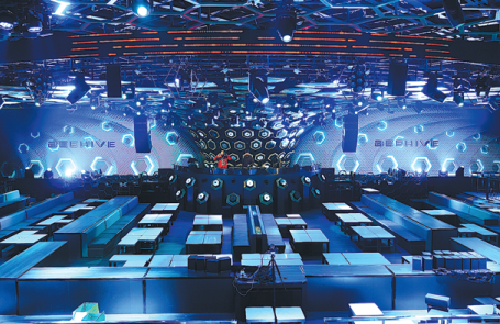 The livestreaming scene at the nightclub on Friday, where a DJ and his team present dazzling lighting and visual effects, as well as dynamic music. HUANG ANQI/XINHUA