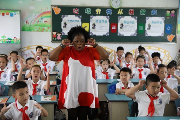Gertrude Kellen Shang teaches at Anji Tianlue Foreign Language School.[Photo by Wu Jianxun/For China Daily] |