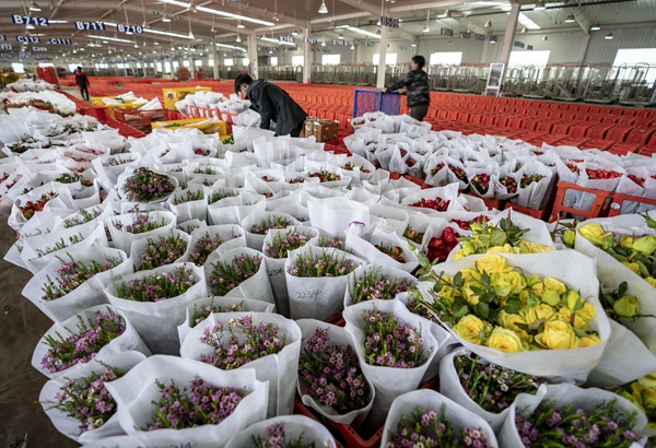 Business resumes in Dounan Flower Market in Kunming, Yunnan province, on Feb 10.[Photo provided to China Daily] |