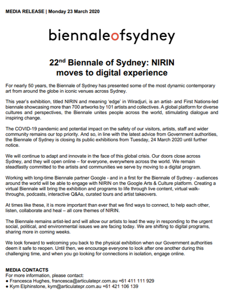 The media release of the 22nd Biennale of Sydney. [Photo provided to Chinaculture.org] |