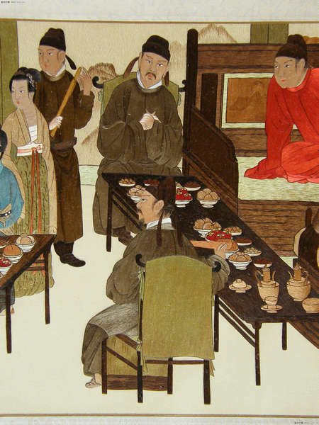 "Before the Qin Dynasty, people were used to sitting on the floor and setting out the feast," Wang says."Social hierarchy had a bearing on the way people could eat. The emperor could have five sets of food and noblemen two. The aristocracy paid great attention to the use of ding, that cooking vessel in the shape of a tripod. The number of ding indicated the identity and prerogative of the host and guests, the specifications of the feast, and the richness of the food. The higher your status, the more ding you used and the higher quality the meal you enjoyed."