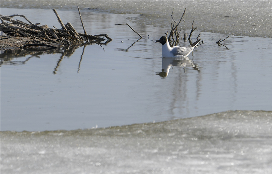 This spring, migratory birds have arrived at Ulungur Lake, known as "the sea in the Gobi", in Northwest China's Xinjiang Uygur autonomous region, on March 28, 2020. The area, now a national wetland park, has been a sanctuary for many water bird species. [Photo/Xinhua]