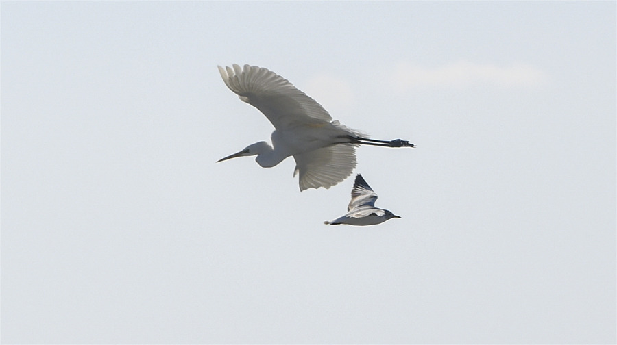 This spring, migratory birds have arrived at Ulungur Lake, known as "the sea in the Gobi", in Northwest China's Xinjiang Uygur autonomous region, on March 28, 2020. The area, now a national wetland park, has been a sanctuary for many water bird species. [Photo/Xinhua]