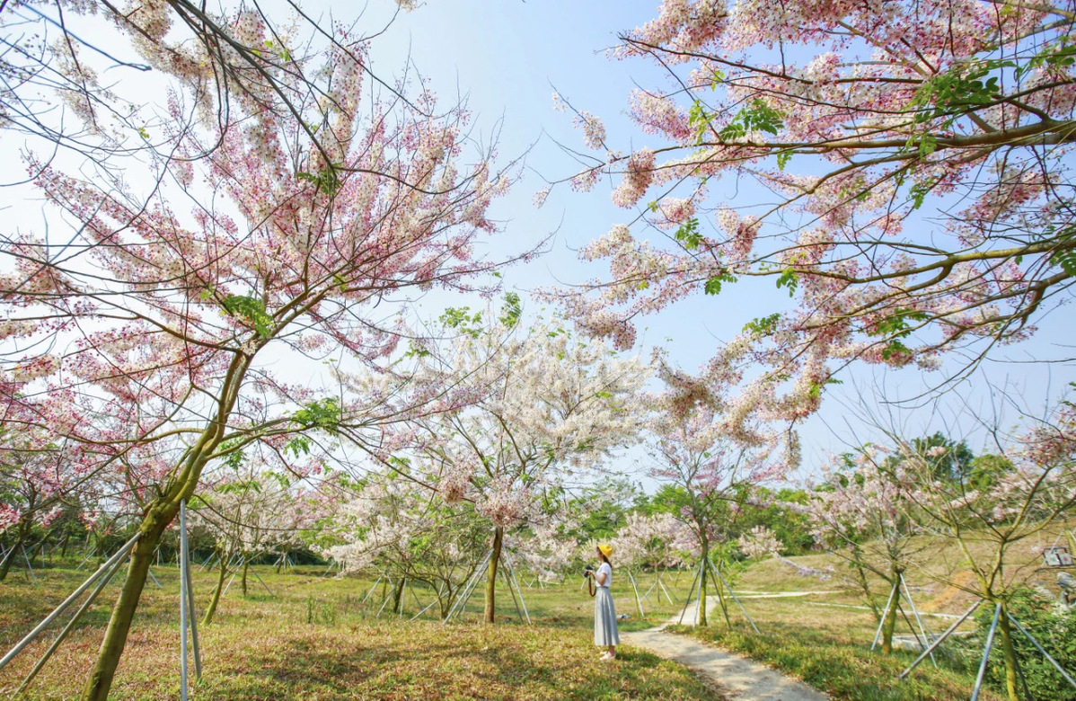 Now is the best time to see the blooming cherry blossoms at Lanyang Cherry Blossom Park in Danzhou, Hainan province. Make sure to visit during the trees’ two-month flowering period. [Photo provided to China Daily]