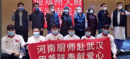 Chef Zhu Gaopeng's team volunteered to provide catering support in Wuhan.[Photo provided to China Daily] |