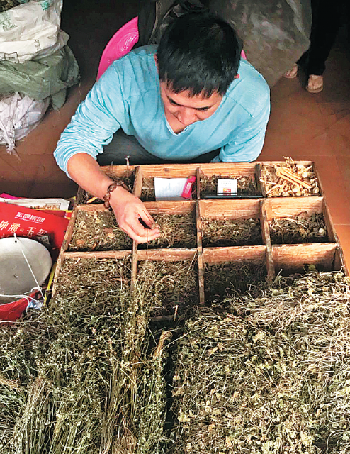 Li Shiliang selects herbs for his herbal medicinal incense. CHINA DAILY