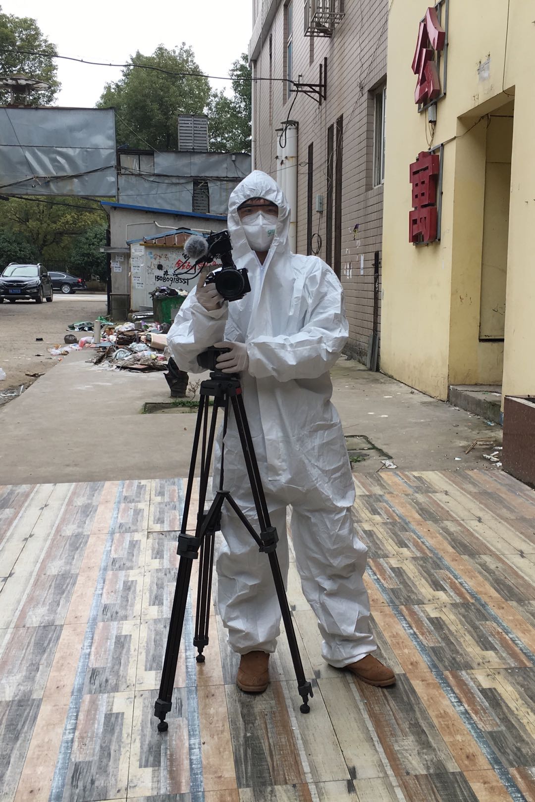 The first time Huang wore a medical protective suit, he felt it was too unwieldy and he found it hard to operate the film equipment. Before each batch of people coming in, Huang also helped clean each room, by making beds and disinfecting everything.