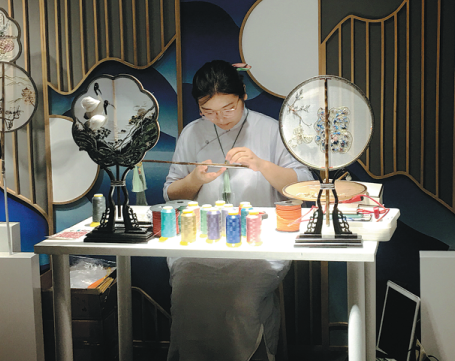 "I think the moon-shaped fan is like a carrier of Chinese culture. And it's a daily-use item. I combine embroidery skills from Suzhou, France and India, and present Chinese culture on the fan," Shi says.