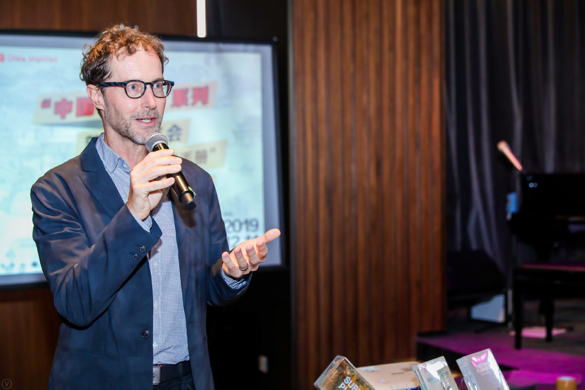 Stewart Lee Beck talks about the China Simplified series of books at a ceremony in Shanghai in December. [Photo provided to China Daily] |